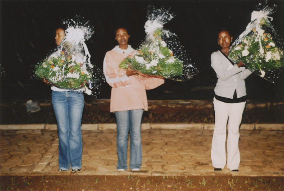 | Description: | Commemoration photograph of two lines of people, one seated and facing the camera, the other standing and facing away, next to a Rwandan flag. |