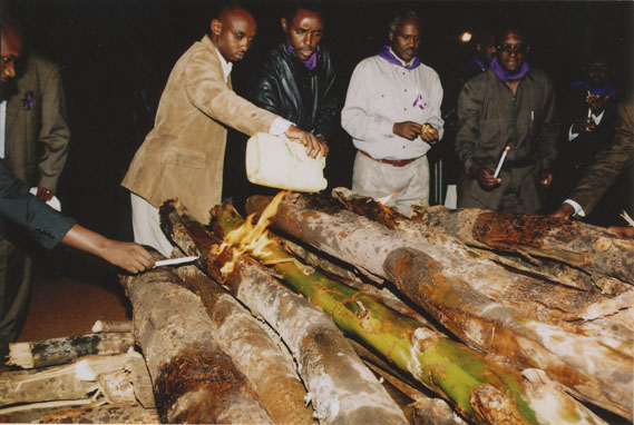 | Description: | Commemoration photograph of a man in a brown suit jacket pouring from a jerry can on to fire wood while flames rise. |