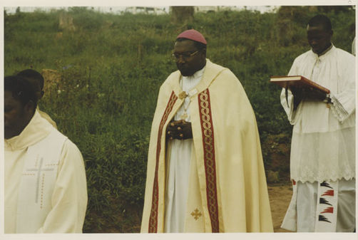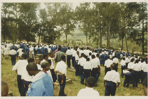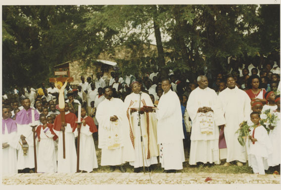 | Description: | Commemoration photograph of a crowd of people standing in front of Kabgayi Cathedral. |