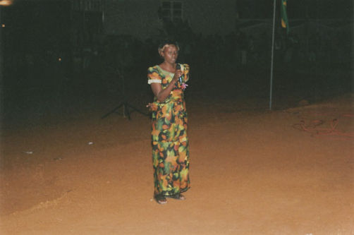 | Description: | Commemoration photograph of a woman in African dress holding a microphone |