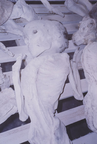 | Description: | Photograph of a preserved corpse. Body is laying on it's back on a wooden table. |