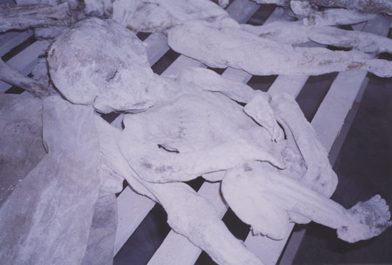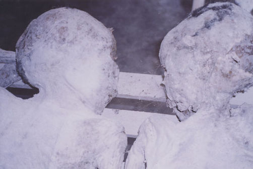 | Description: | Photograph of a preserved body laying on it's stomach on the floor. Body next to it is cradling it's head with it's arms. |