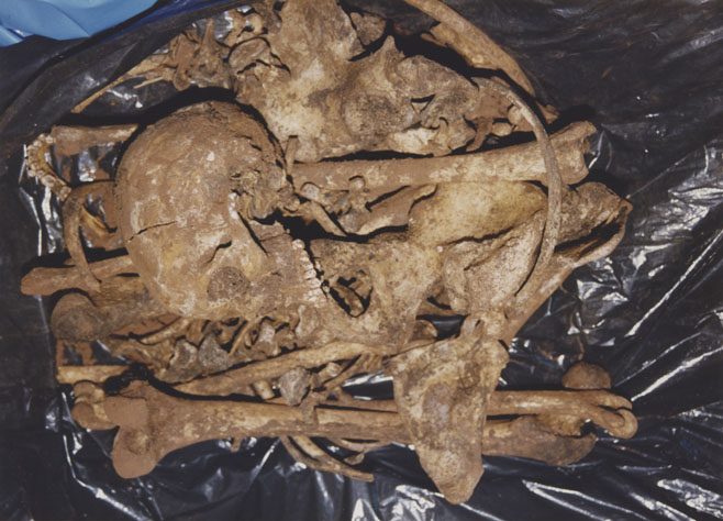 | Description: | Photograph of a pile of exhumed bones. |