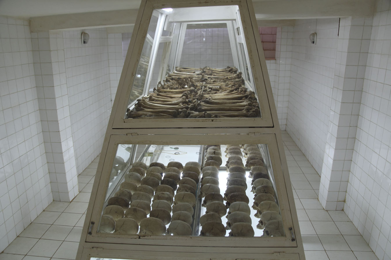 | Description: | Photograph of the skulls located in the burial chamber beneath Nyamata Church |