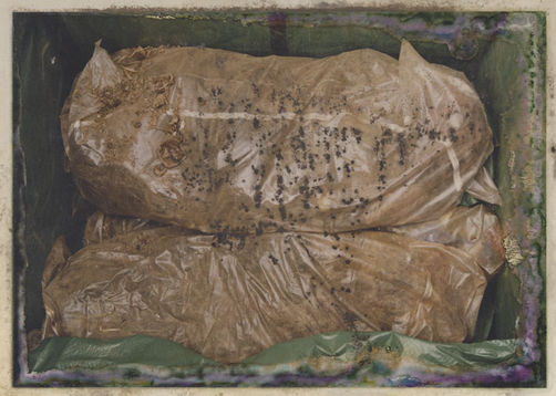 | Description: | Photograph of a mass grave. Two clear plastic bags containing human remains. |