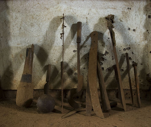 These photographs feature killing tools and victims' belongings such as ID cards, clothes and more. These objects are found in the Genocide Archive of Rwanda's physical archive at the Kigali Genocide Memorial, and on display in other memorials all over the country.
