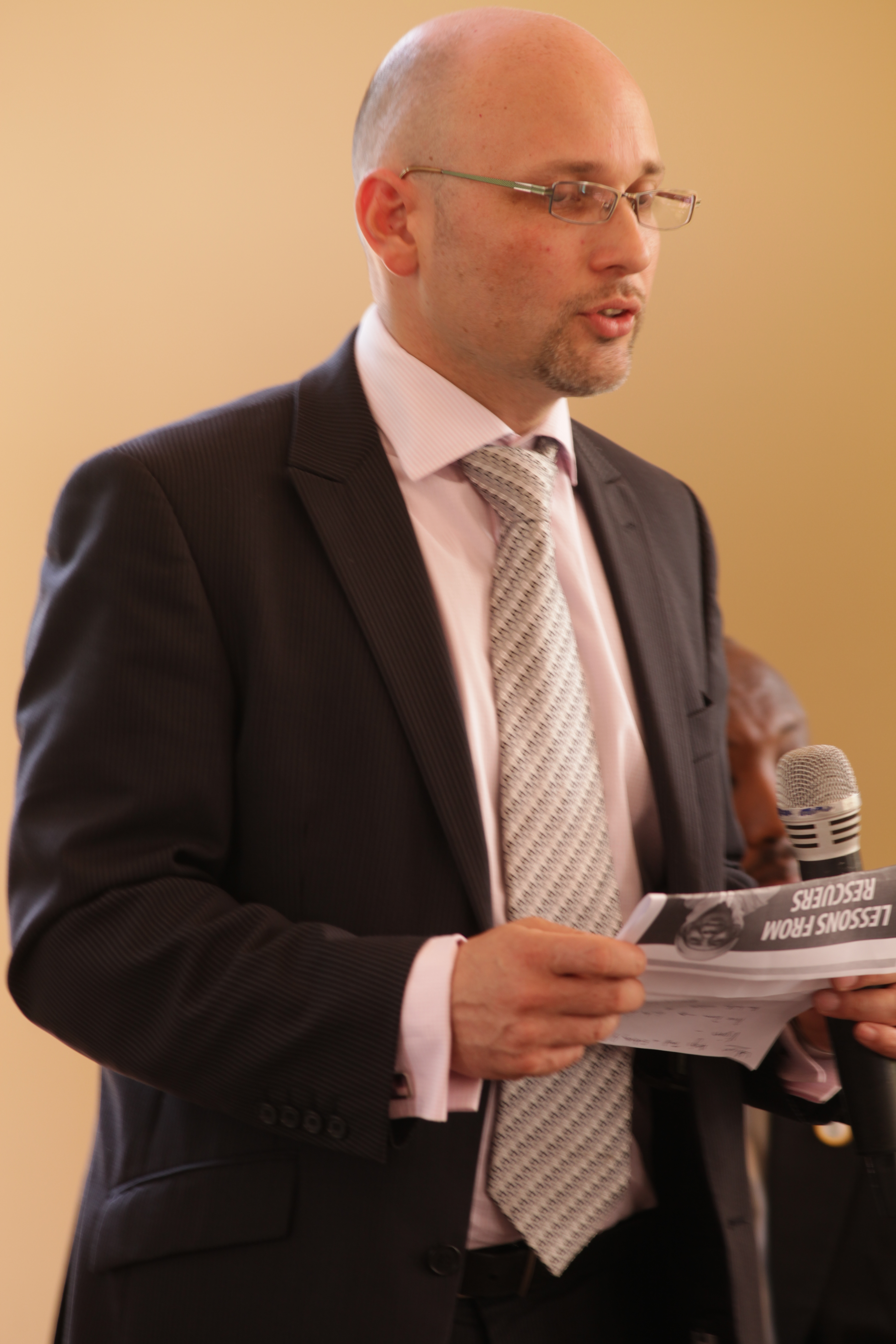 | Description: | Dr James Smith, Aegis Trust CEO, speaking at the launch of Ubumuntu film and the importance of keeping in memory risks that have been taken by rescuers during genocide. |