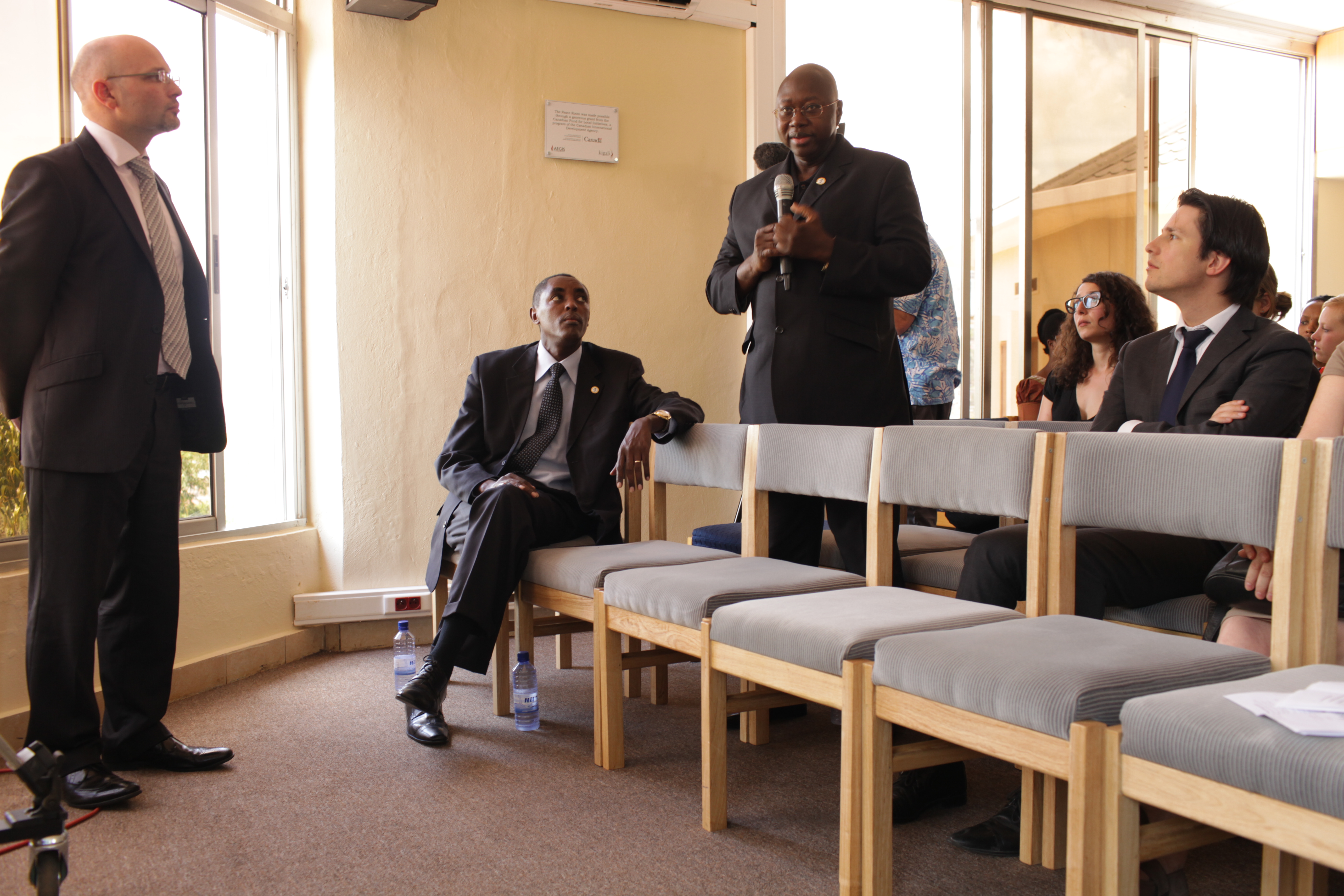 | Description: | Aegis staff welcoming guest to the lauch of Ubumuntu film at Kigali Genocide Memorial Center. |