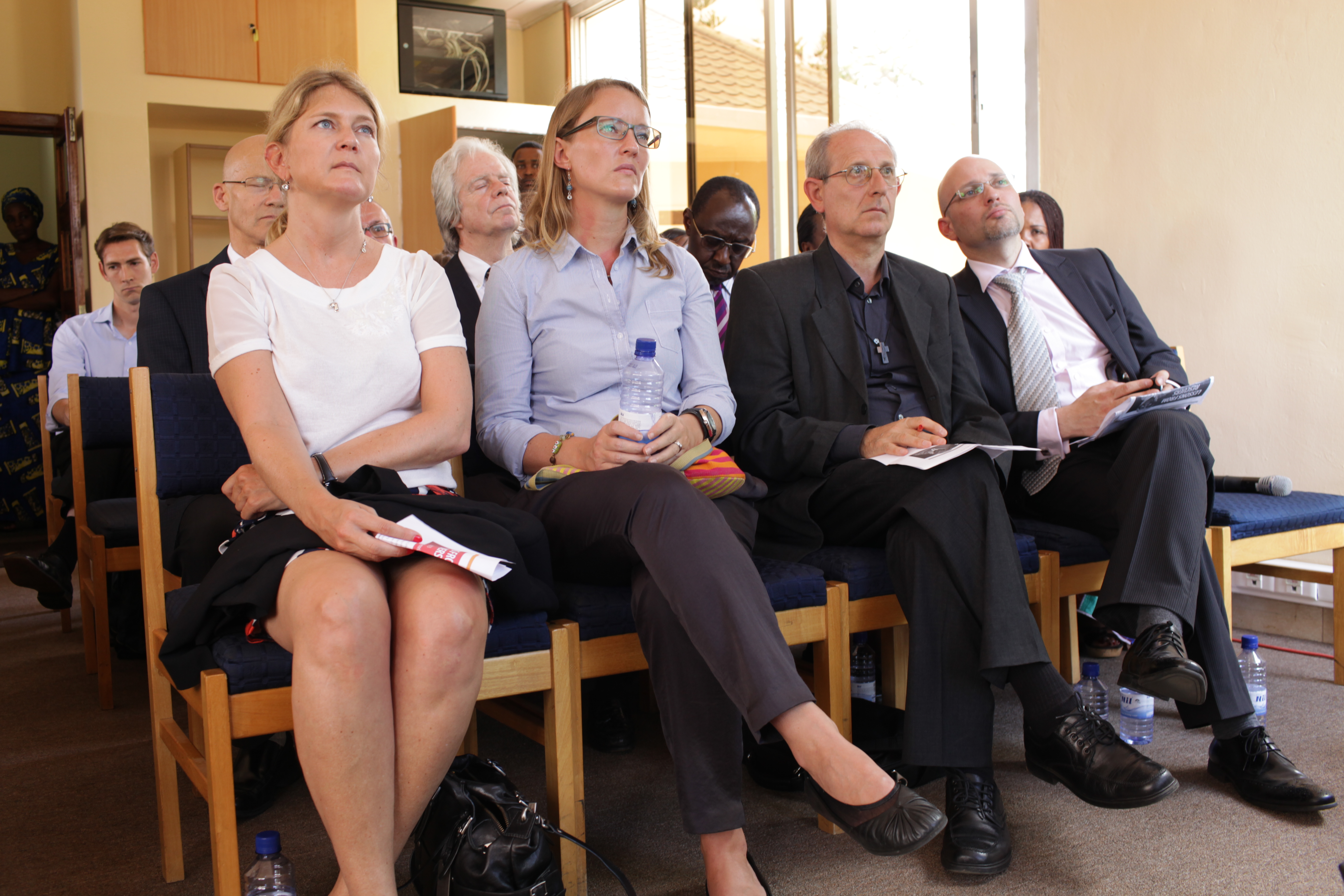 | Description: | Guest who attended the launch of Ubumuntu film at Kigali Genocide Memorial listening to speakers. |