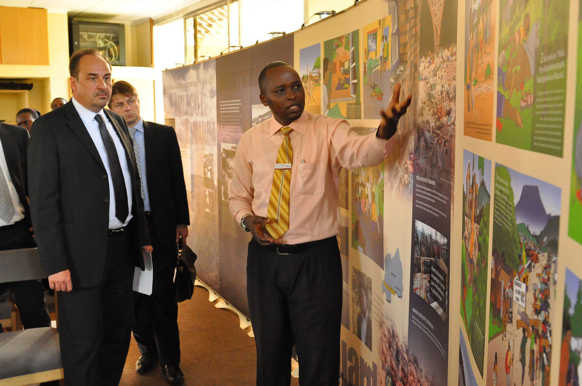 | Description: | Czech Foreign Minister, Jan Kohout and his delegation being guided through the Kigali Genocide Memorial Center exhibitions. |