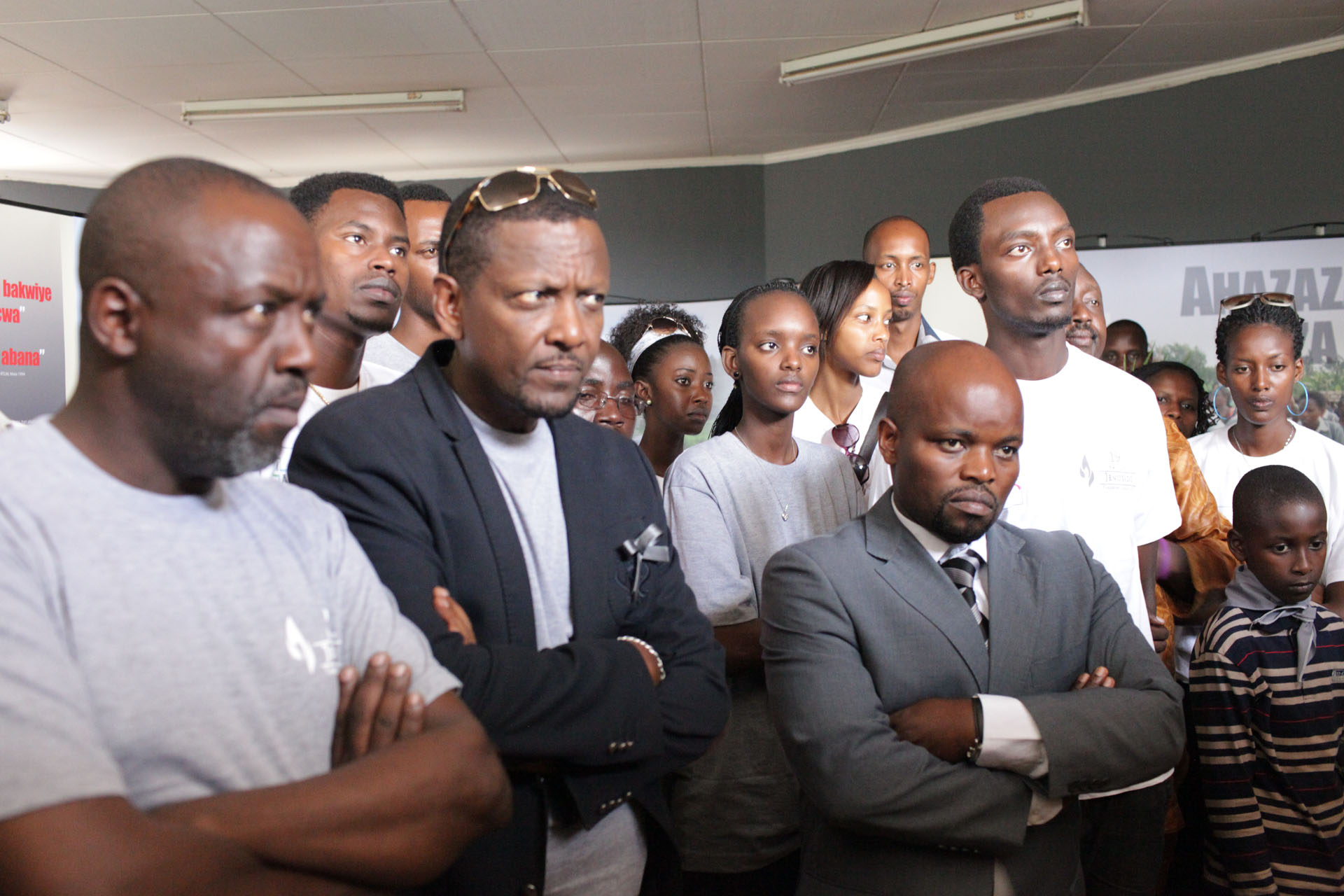 Minister Jean Philbert Nsengimana, Miss Rwanda 2012 Aurore and various artists at Kigali Genocide memorial.