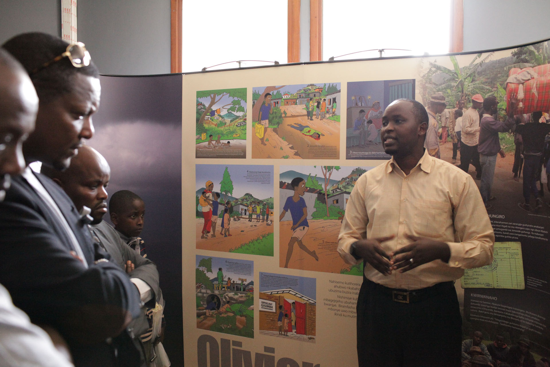 Freddy Mutanguha speaks at the mobile exhibition in Peace room at KGMC