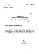 | Description: | A note addressed to the President of the Republic of France, which the subject was the evacuation of Mr. Bernard Kouchner, who was on a mission to Rwanda after he fails to evacuate orphans. |