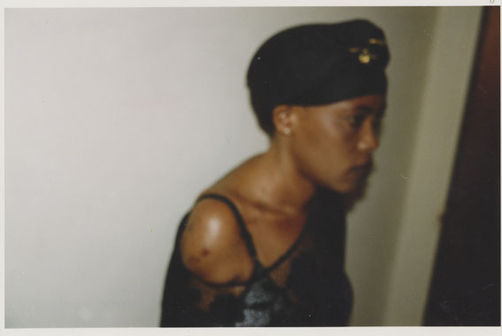 | Description: | Black and white portrait of a woman. African Rights survivor photographic project. (verso) |