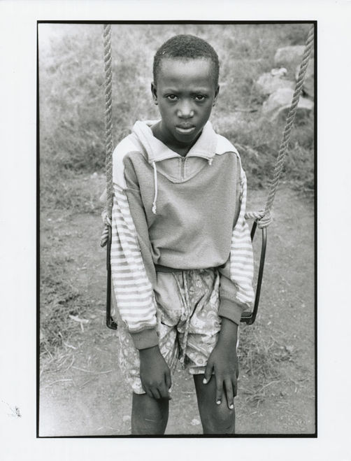 | Description: | Black and white portrait of a boy on a swing. African Rights survivor photographic project. |