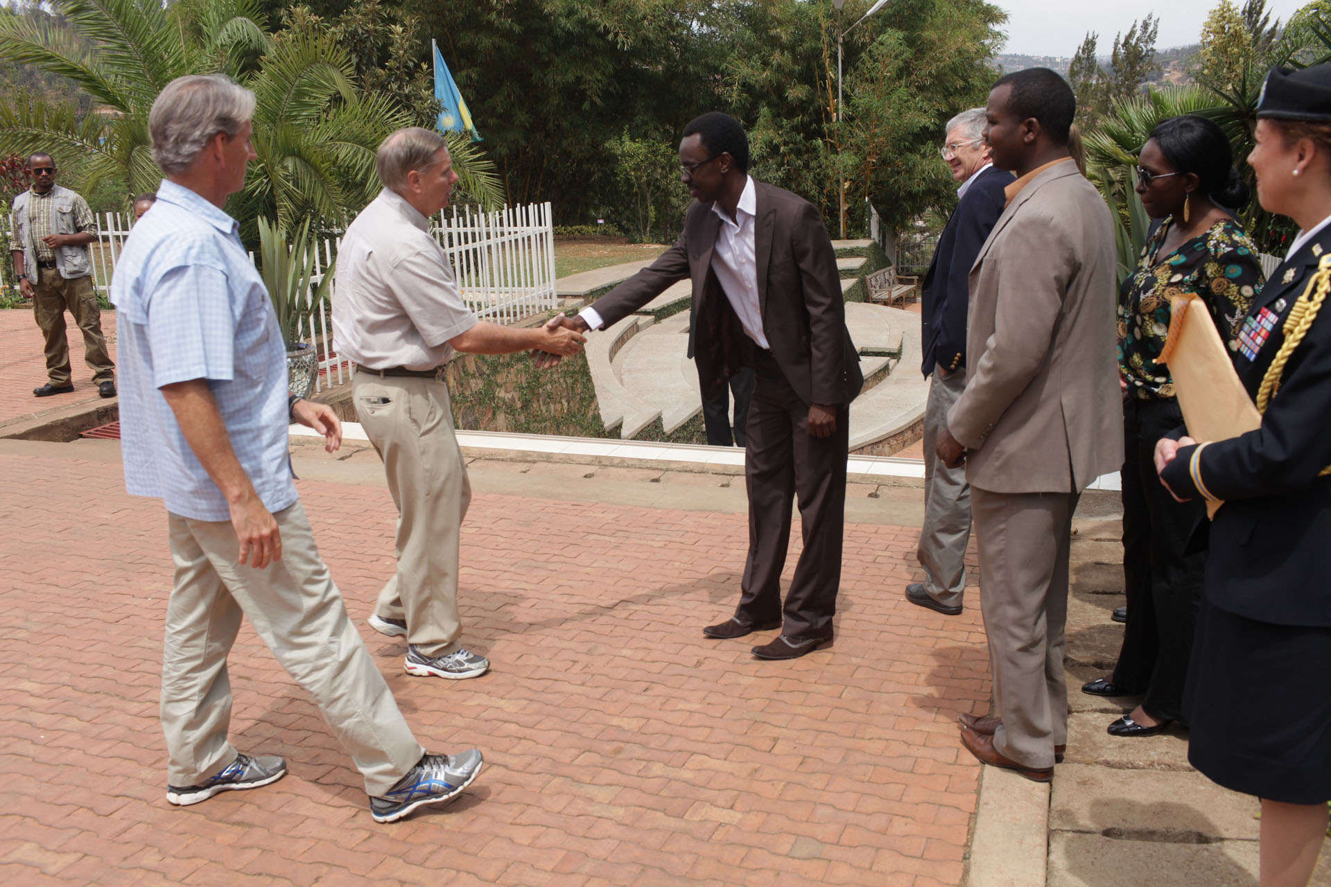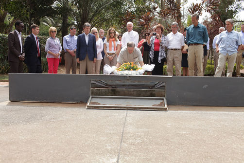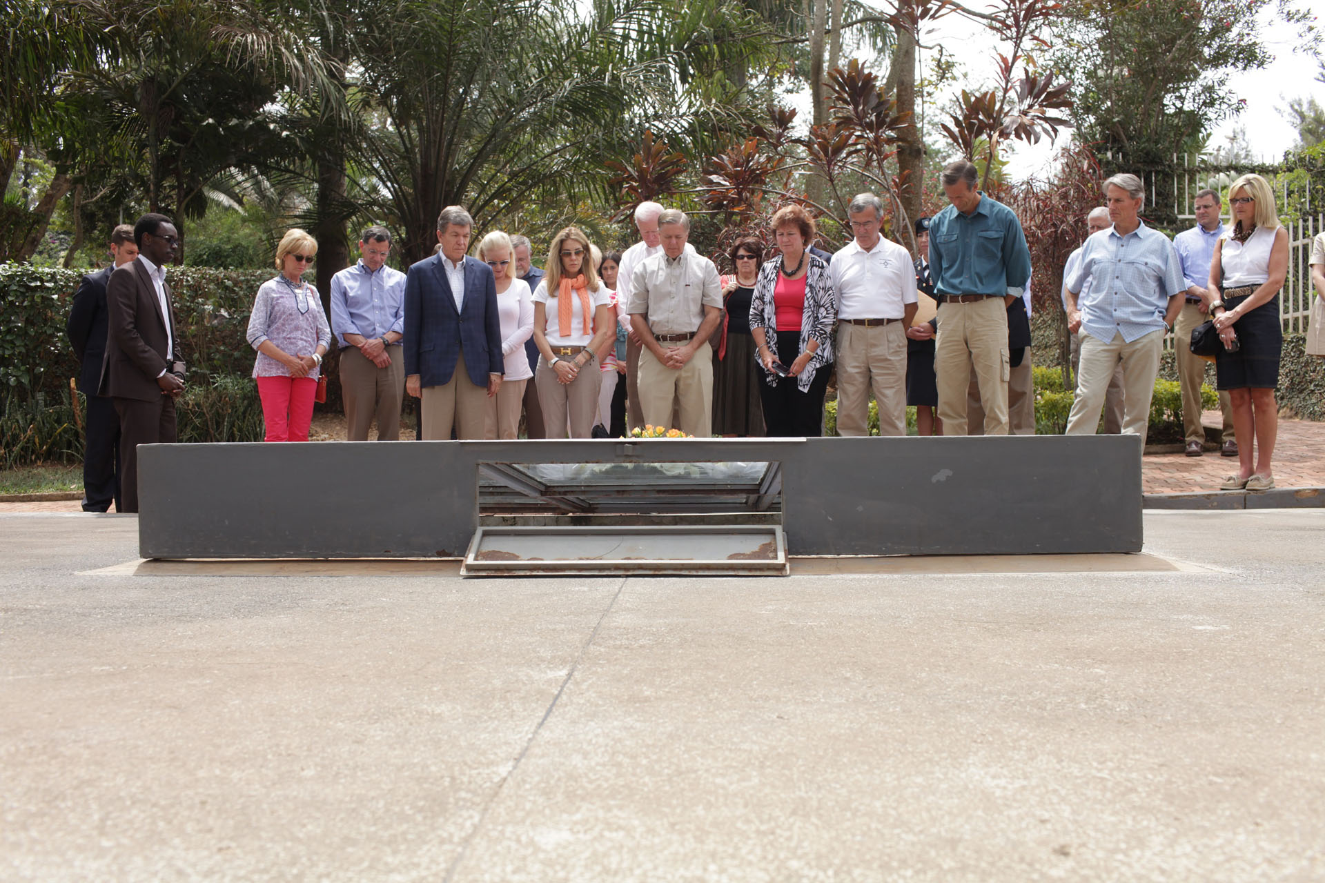 | Description: | U.S. Senators laying flowers in a sign of respect to the hundreds of thousands of victims of the Genocide perpetrated against the Tutsi buried at the Kigali Genocide Memorial Center |